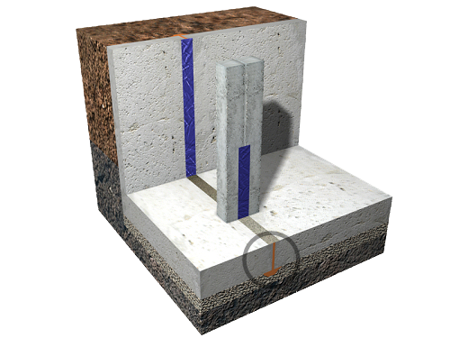 Reparació de junt de dilatació en llosa de fonamentació, per sota del nivell freàtic. Sistema "PANTALLAX", format per sistema Injet-Flex, injecció de resina hidroexpansiva flexible de poliuretà, hidròfoba, (rendiment: 3 kg/m); obertura d'encaixonat de 3-5x25 cm; i segellat de junt, sistema Mortar, amb morter per a reparació i impermeabilització, (rendiment: 18 kg/m). | ||